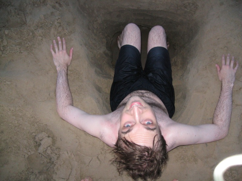 Ben in a hole he dug on the beach